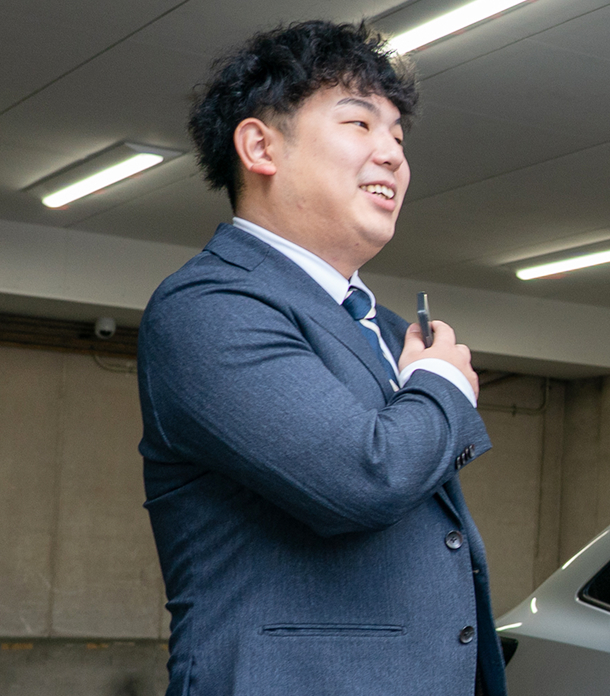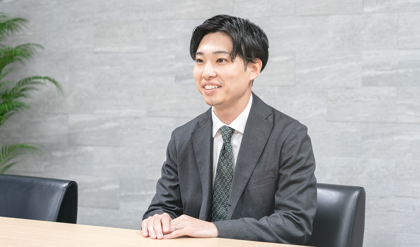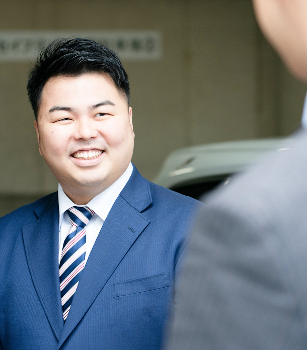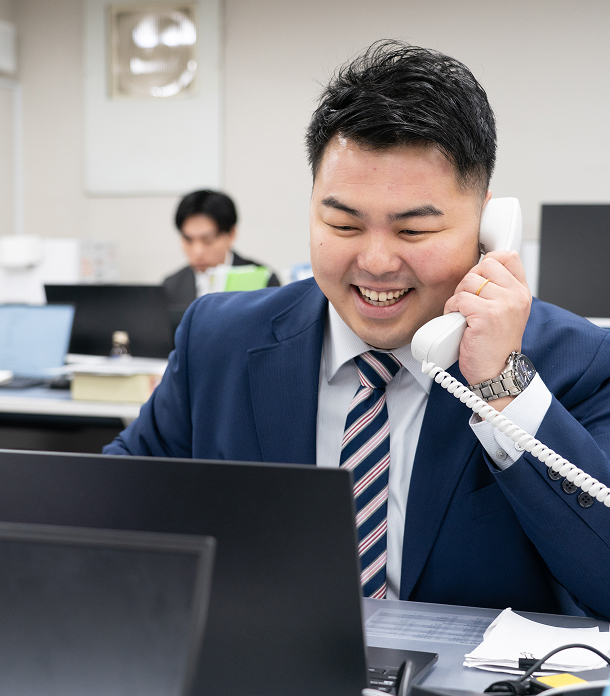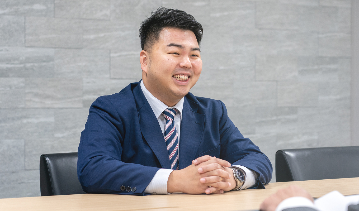- 前職は港湾関係の現場監督でした。日々貨物を管理する中で、人と直接話ができる仕事に就きたいと強く思うようになり、営業職への転身を決意しました。面接では雑談を交えた温かいコミュニケーションがあり、この会社なら安心して働けると直感したのが入社のきっかけです。