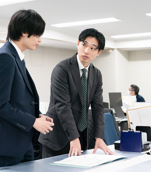 - 先輩方それぞれの良いところを吸収し、自分なりの営業スタイルを確立するのが当面の目標です。お客さまに信頼していただける営業を目指し、小さなことでもお客さまの声を真摯に聞き、一番の相談相手になれるよう日々経験を積んでいます。