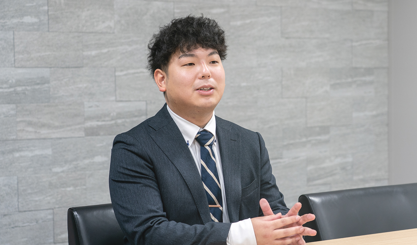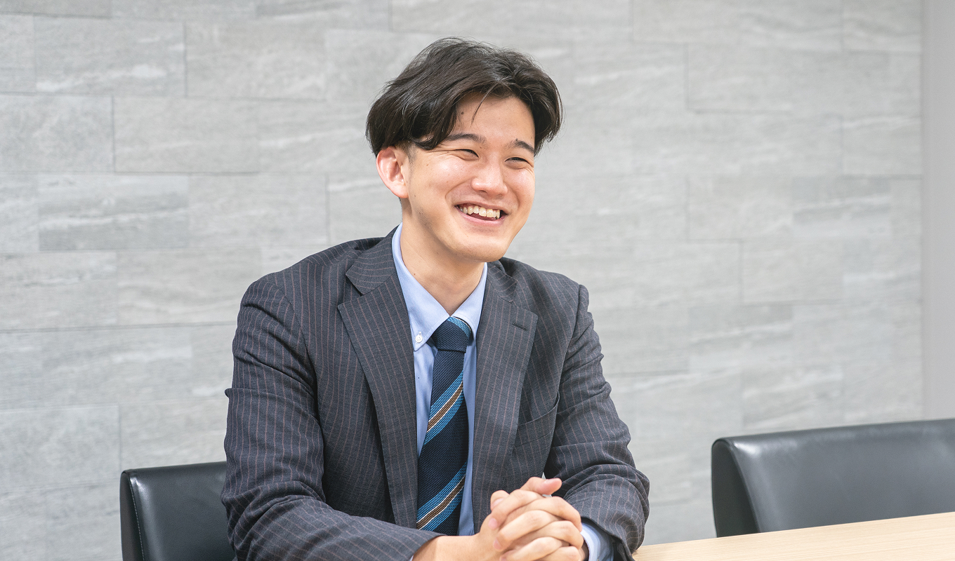 - 前職はスーツの販売員をしていました。より深く人と関わる営業職をしたいと考え、転職活動をする中で、コロナ禍でも対面で丁寧な説明会を行ってくれた当社の誠実さに心を動かされました。メーカー・物流・行政など多岐にわたる業界と関わりながら、社会インフラを支える仕事の幅広さにも魅力を感じました。